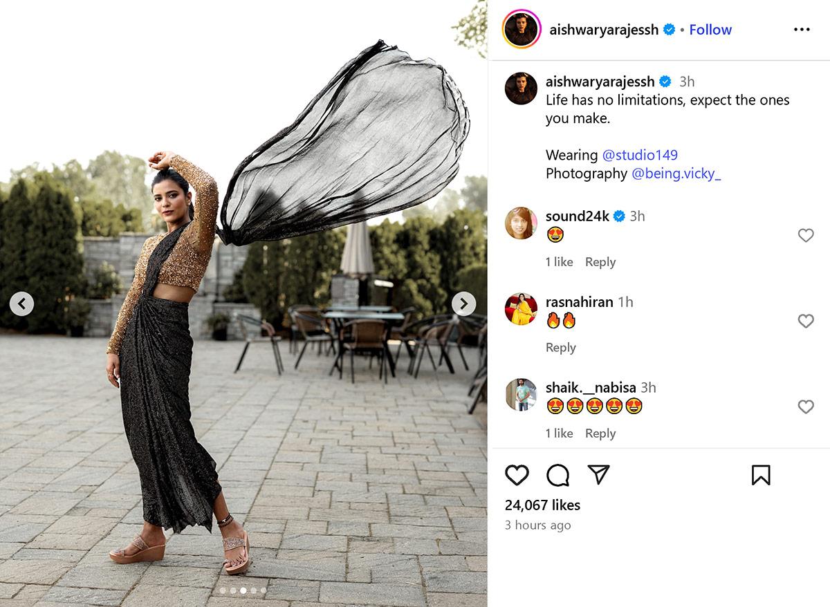 Aishwarya Rajesh's quote for the day: 'Life has no limitations, expect the ones you make.'