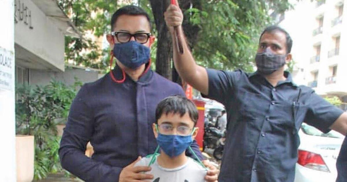 The Mumbai rains don't stop Aamir Khan from stepping out with younger son Azad.