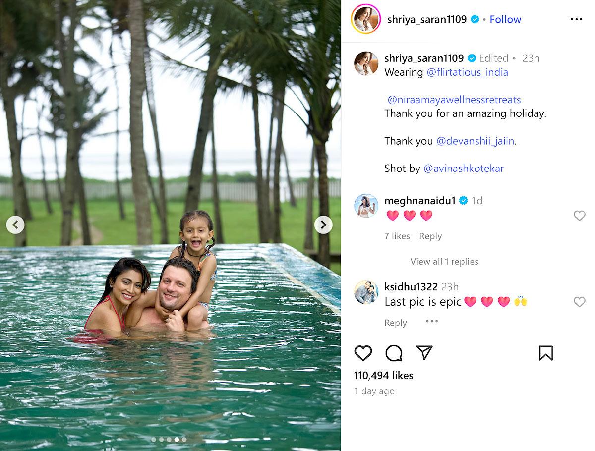Shriya Saran spent a fun weekend in Goa with husband Andrei Koscheev and daughter Radha, and updates us on social media.