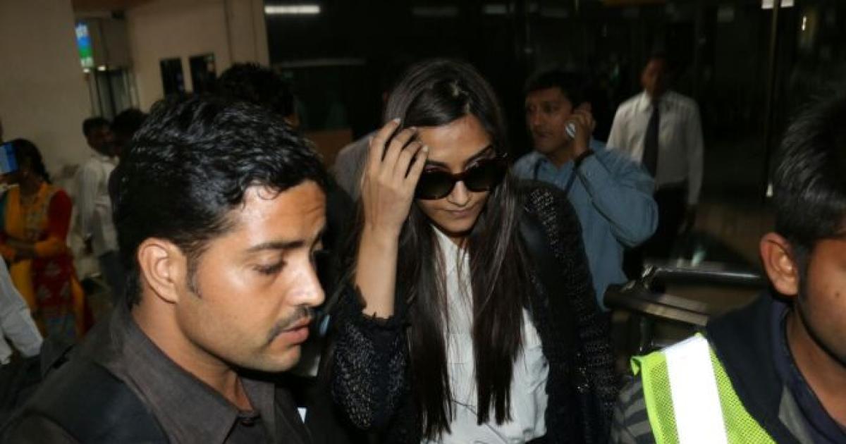 Image: Actress Sonam Kapoor at Rajkot airport on Wednesday. Photograph: Haresh Pandya.