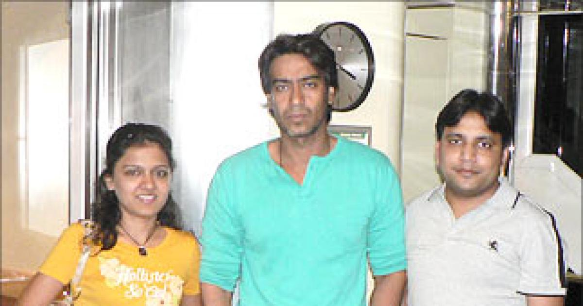 Reader Ashish Yaduka and his wife Nupur bumped into Ajay Devgan on a Star Cruise to Lakshadweep. This photograph was taken on the last day of the three-day cruise.