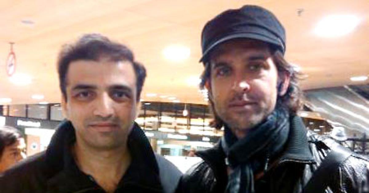 Reader Atul Patwardhan bumpted into Hrithik Roshan at the Zurich airport. This picture was clicked by Hrithik's wife Sussanne. If you encounter/meet/see film or television personalities and take a photograph or a video of the star(s), please scan the photograph(s) and