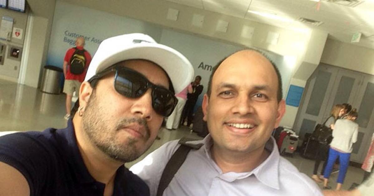 Reader Shivangi Bhatia has sent us a picture of her husband Manish Bhatia with Mika Singh at the Dallas airport.