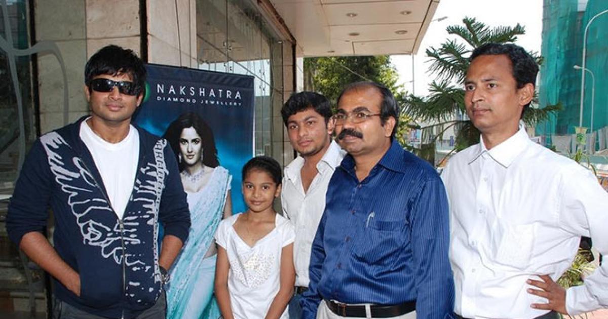 Reader Sundar Srinivasan (extreme right) bumped into R Madhavan, at a jewellery showroom in Chennai, and sent us a picture. Srinivasan was with Vijaykumar (in blue), Kiran (centre) and Phooja.