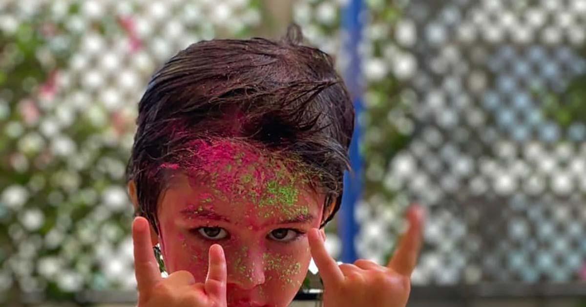 Taimur Ali Khan is drenched in Holi colours.