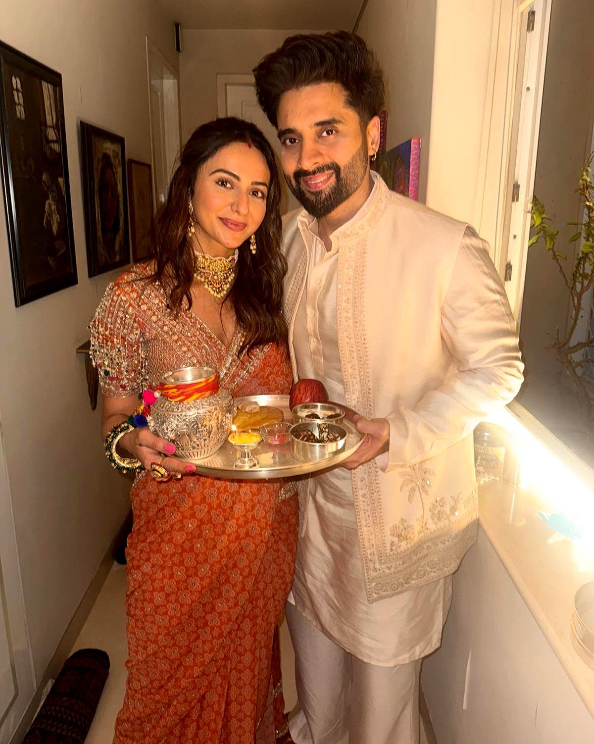 After fasting for her husband Jackky Bhagnani, she writes, 'Happy Karvachauth from us to you And now let's eat cake.'