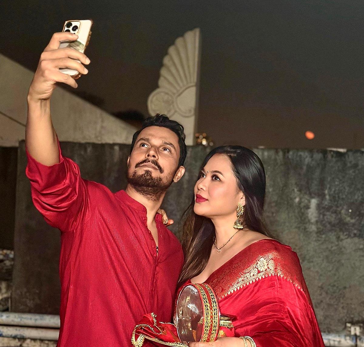 Vikrant Massey celebrates Karwa Chauth with Sheetal Thakur.