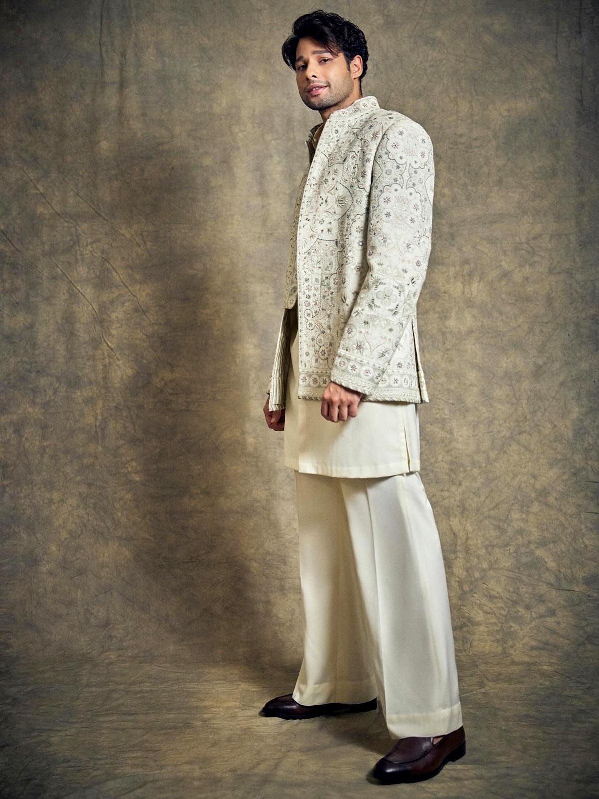 Siddhant Chaturvedi keeps his Diwali look rooted in tradition by donning a fuss-free, stylish three-piece attire designed by Tarun Tahiliani.