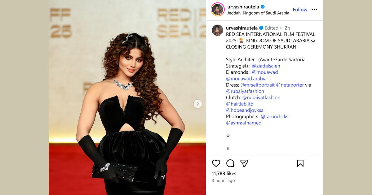 Urvashi Rautela added a lot of glamour to the closing ceremony at the Red Sea Film Festival in Jeddah, Saudi Arabia.