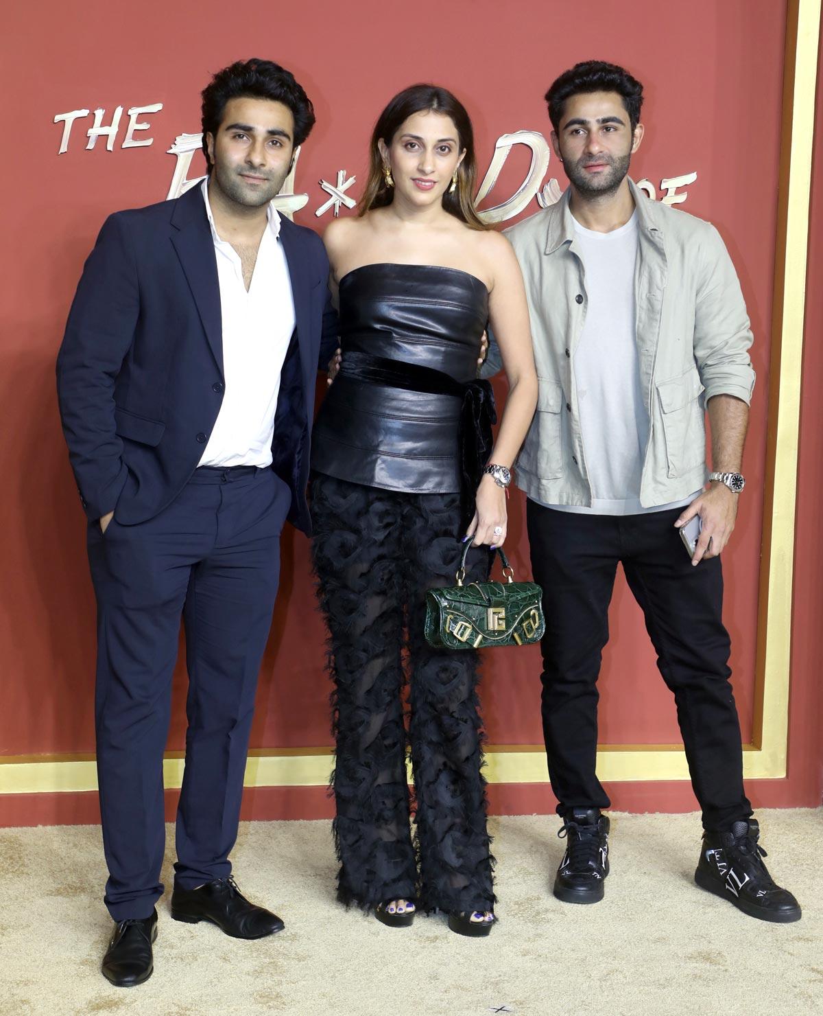 Aadar Jain, left, Anissa Malhotra and her husband Armaan Jain.
