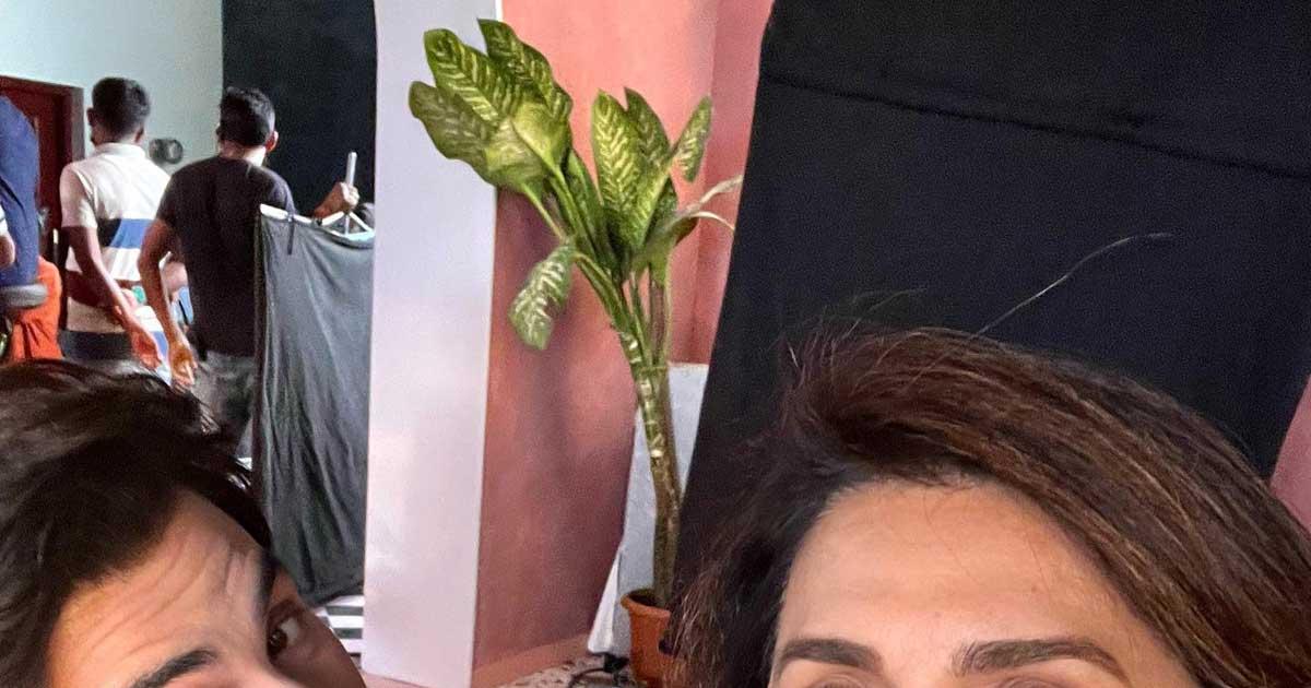 Neetu posts a picture from the shoot and writes, 'Ad shoot with my "jaane Jigar" (heartbeat)'