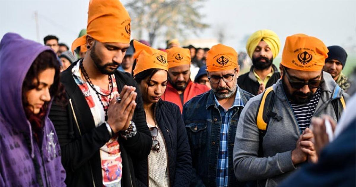 Taapsee, Vicky Kaushal, writer Kanika Dhillon, producer Aanand L Rai and director Anurag Kashyap seek divine blessings on day one of the shoot.