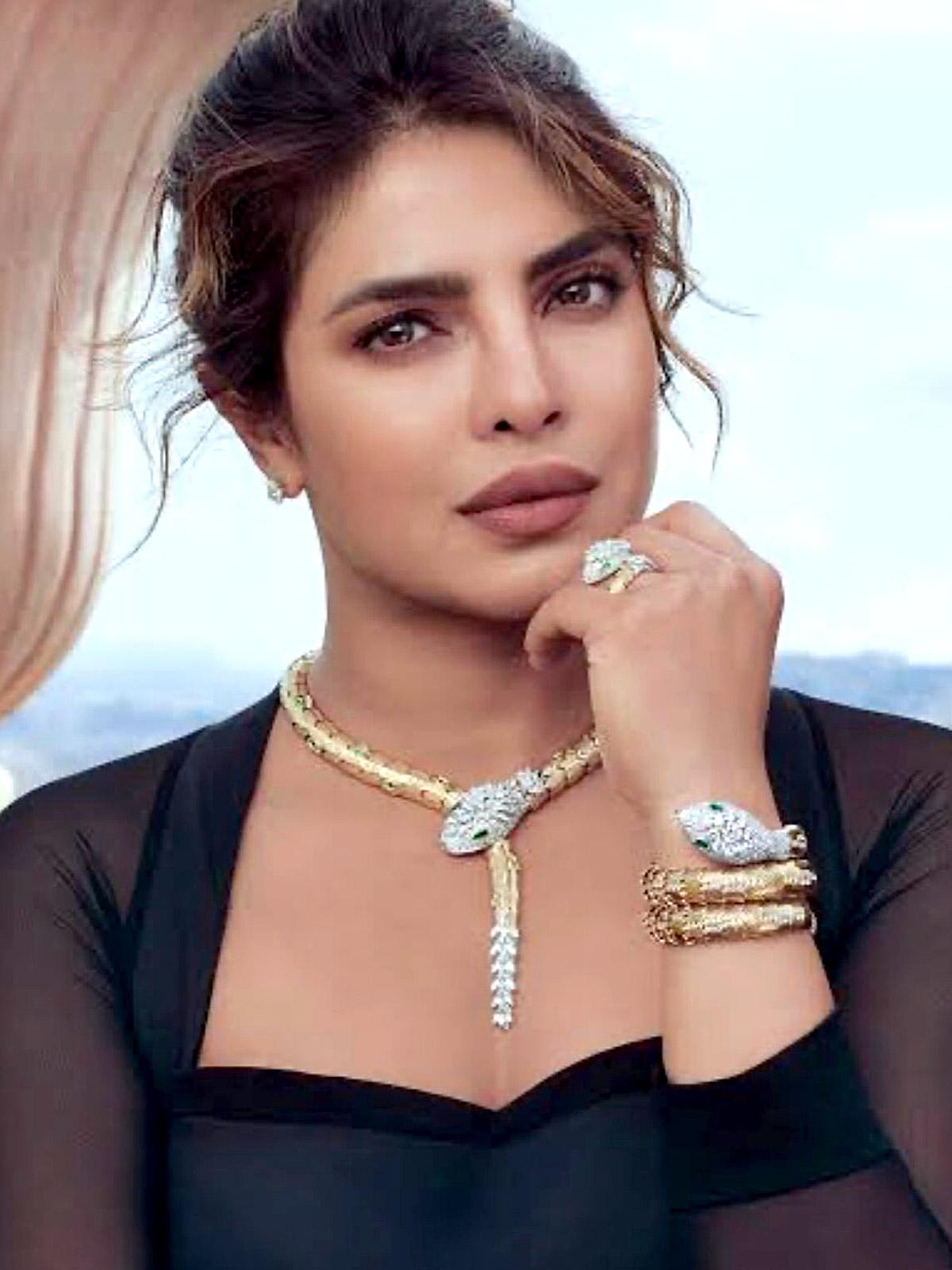 Priyanka's mum Dr Madhu Chopra reacts: 'Superb correlation. Your fascination for huge snakes and Bvlgari Serpenti!!'.