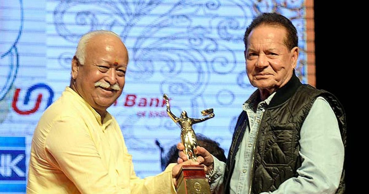RSS Sarsanghchalak Mohan Bhagwat presents the Master Deenanath Mangeshkar Lifetime Achievement Award, the Jeevan Gaurav Puraskar, Salim Khan, who has co-written some of the most memorable Hindi films of the 1970s.