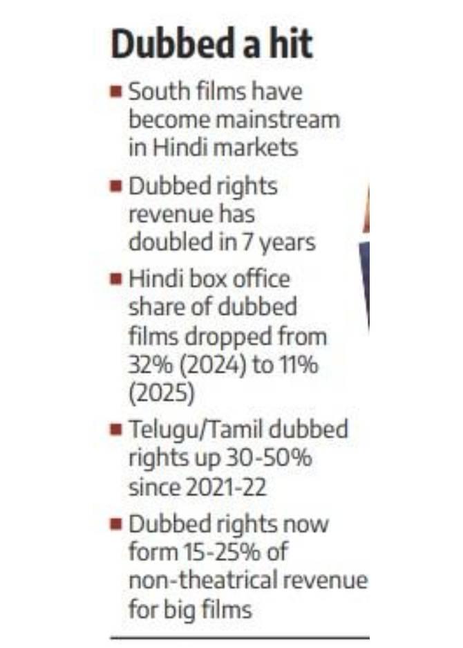 This has resulted in dubbing rights for South films expected to grow in the range of eight to 10 per cent in 2026, according to an industry expert.