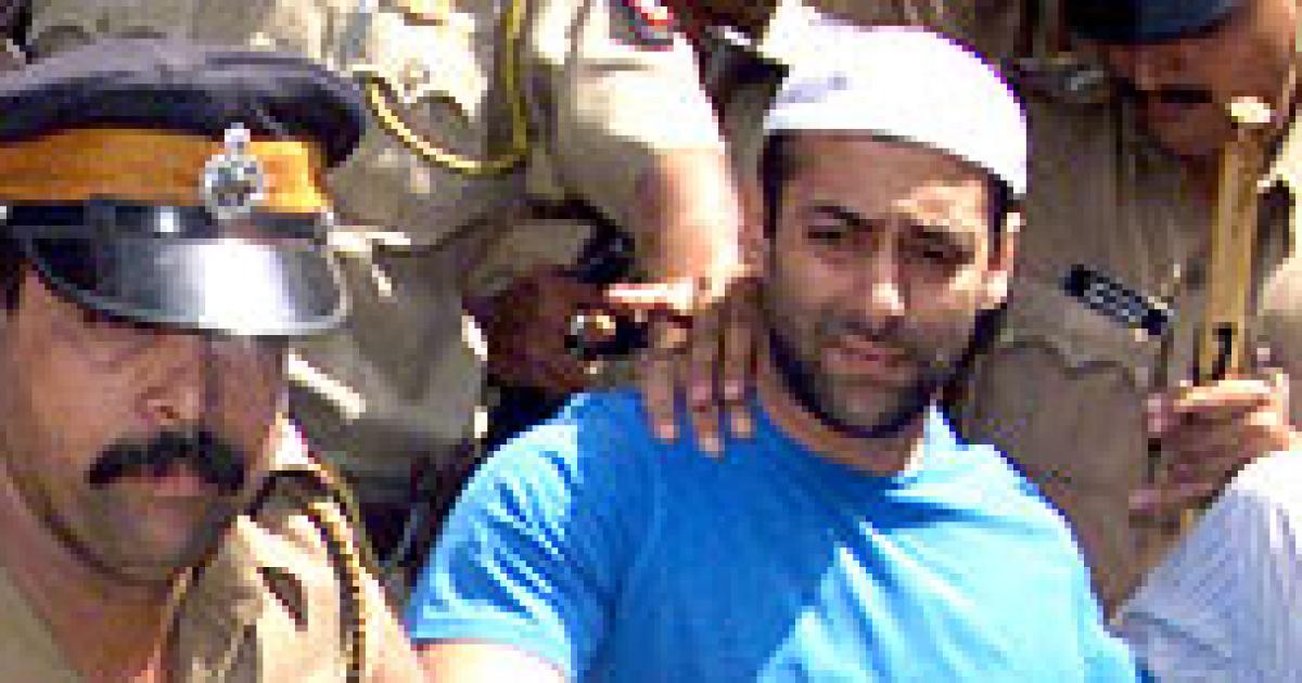 Image: Actor Salman Khan is escorted by the police to a court in Mumbai, in this photograph dated October 14, 2002, after his car ran over four bakery workers sleeping on a pavement in September, killing one and injuring four.