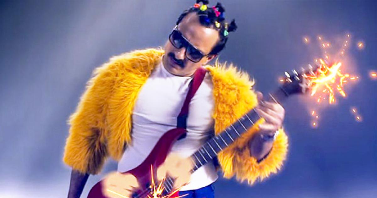 With prescription drugs of no use anymore, he promptly proceeds to pop a hallucinogenic pill, one that looks more like a star-shaped cupcake candy, to behold a hawaldar in Asha Parekh's most iconic costume and slip into a faux fur bolero sporting Gwen Stefani's 'hair turds.'