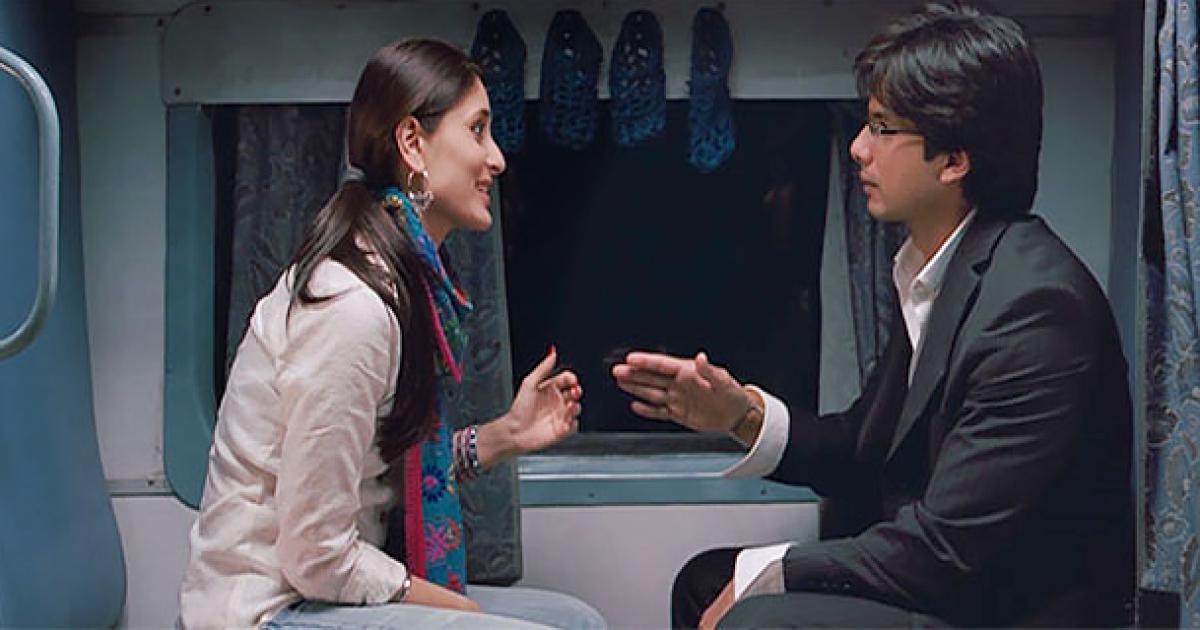 All of Jab We Met hinges on Kareena Kapoor's chatterbox and Shahid Kapoor's shy silent types first encounter.