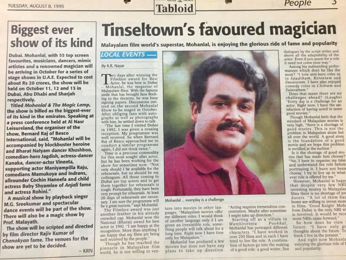 Soon after Mohanlal received the Dadasaheb Phalke Award, most news articles written about him hailed and elaborated his acting skills.