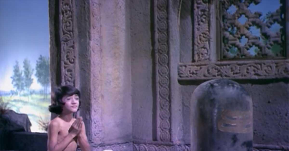 That's a little boy pleading with Lord Shiva to make an appearance. And the voice singing for him is none other than Lata Mangeshkar.