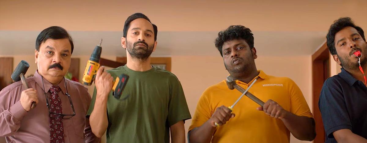 As in Njandukalude Nattil Oridavela, here too, he uses the central story of his leads (Fahadh Faasil and Kalyani Priyadarshan) as the staging area for such high baritone, buttoned-up performers as Lal, Suresh Krishna, Sudheer Karamana and Vinay Forrt to lay waste to their 'serious actor' image.
