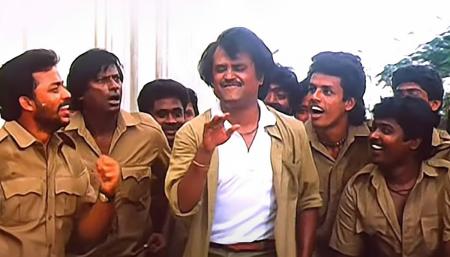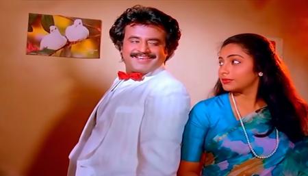 Set inside a factory, the way Rajini teasingly mocks Vijayashanti while dancing with his peers made this catchy song an instant hit.