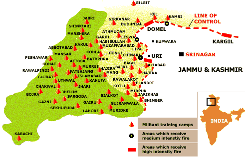 Yeh border ki zindagi hai," sighs Bilquees, one of the few educated inhabitants of this little Indian village on the Indo-Pak border in Jammu and Kashmir, "You just can't understand the trouble we have because of this firing." Spread out in naked isolation, eight kilometres downhill Chaukas, one of the most sensitive forward posts along the Line of Control, Urusa is the nearest village to the border on the Indian side. And, as such, the most vulnerable to cross border firings, an easy prey for even small arms. "Firing roz hota hai. Sabse bada problem wohi hai. Na sone ko detha hai, na kheti karne ko deta hai (Firing goes on all the time. That's our major trouble. They don't let us sleep, nor farm)," says Mohammad Anwar, "They don't let us live in peace -- they fire when they feel like, without differentiating between day or night." Anwar, who talks with the experience of one who has handled many media teams -- Time magazine correspondents were there only a couple of days before, and teams of CNN and The New York Times were to follow the next day -- is blissfully unaware of India and Pakistan's newfound nuclear status. He knows that something important happened on May 11 and 13, after which, he says, for the next couple of days, there was increased firing. "We don't venture out of houses when the firing is on," Anwar continues, "Once we were returning with a body from Baramullah ( the nearest town after Uri) when they started heavy artillery. Shells were bursting all over the road - they were trying to get the bridge -- and we had to leave the corpse by the road side and take cover. It lay there for nearly two hours before we could retrieve it!" Urusa is the only village along the LoC in the Kashmir valley which is yet to shift behind Indian lines. Cut off from the rest of the world -- there are no buses connecting it to Uri or Baramullah anymore -- it has around 250 inhabitants in 25 houses, and boasts of a primary school, a mosque, an anganwadi and nothing else. There has been no panchayat election here since the start of militancy, and the villagers are dependent on the army -- the men manning Chaukas and its base camp, to be precise -- for food as well as protection. "Yeh dekho," says Bilquees, who doubles as the primary school teacher, inviting you into her bare two- room fiefdom, "There are 45 children here. There is no chair, the floor is a mess... When the firing starts, which is an everyday occurrence, the children run out to hide. In such circumstances, how much can they study?" The nearest secondary school is three kilometres away, Bilquees continues, and has to be walked to. Not long ago, public buses used to ply till the Weak bridge, hardly a kilometre away -- but now, thanks to the increased artillery fire in the area, there are no buses. "Hamare bacchon ko paidal school jaana padta hai, hamko bhi door jana padta hai ration laane (Our children have to walk to the school, we have to walk to get our rations)," she says, "If someone falls ill we can't even take him to the hospital if the firing is on..." Up at Chaukas, on nights when things are quiet, when not even rifle shots punctuate the peace which surrounds it, Major Y starts worrying. Peace, especially absolute peace like what he was enjoying now, he knows, is in many cases a precursor to acts of war.