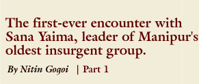 Our haversacks full of essentials for the next few days, Photographer Nilayan Dutta and I waited for the morrow with apprehension... Day 1 YUMNAM Rupachandra, correspondent of The Statesman, arrives with four others -- Khelen Thokchom, editor of Sangai Express, a local English daily, two photographers, and an ANI correspondent -- at 0600 hours IST. We set off in a Tata Sumo. An hour reaches us to a small town. After a bit of breakfast, we turn off the highway, onto a dirt track. We arrive at a village and are told to unload our rucksacks and wait. Ten minutes later, a man in a heavy jacket rides up on a bicycle. He could have been one of the several onlookers gathered around us but for one thing: a small Kenwood two-way radio around his neck. He is Inga, and chats animatedly with our local friends in Manipuri. Rupachandra translates for our benefit: "An armed posse will escort us from this point." Half an hour later, guerrillas arrive. In jungle fatigues, armed with AK-56s, the band of 11 boys, all of them in their early 20s, march into the village in a single file. The leader, also carrying a radio, is a lance corporal in the UNLF hierarchy. He instructs his boys to pick up our luggage. I gather we are VIPs to them, so we are exempted from carrying our own bags. With two 'scouts' in front, the procession begins. We march in single file. The pace, as it happens in the beginning of any journey on foot, is brisk. Soon we begin to sweat -- and off come our sweaters and heavy jackets. After an hour or so, the water bottles come out. So do biscuits and chocolates. We city-types are beginning to tire and wonder what we have got ourselves into. On the way, villagers stare at us, as if watching an exotic species. They are used to armed men walking through, but not 'civilians' like us. After two-and-a-half hours, we reach the village where we are to have lunch. All of us lie down on the cool grass. Lunch is rice and dal. It has never tasted so great anywhere before! CHAIREN is checking the route ahead for enemy movement. "I am not so much worried about the security forces. What I am concerned about is our rivals attacking unexpectedly," he says. Apparently, other groups such as the Issac-Muivah faction of the National Socialist Council of Nagaland -- bitter enemies of the UNLF -- control some areas en route. We begin walking again, this time silently. As dusk dissolves into darkness, the fear in my mind accentuates. Everyone is quiet. What if there is an attack? Are these guys capable of warding it off? The walk continues for the next four hours with little or no banter among us. Around 2000 hours, we reach a riverbank. Chairen is constantly in touch with his base on radio. We wait. A vehicle is supposed to pick us up here. After 30 minutes a Shaktiman truck wades through the waist-deep water and comes to our side. We clamber on to the open truck, grateful that we don't have to walk anymore.