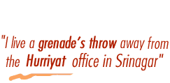 For the sake of sounding a bit historic and, I hope, impressive, this is the same place that caused a certain Mughal gentleman to claim -- a little rashly, I would say -- something along: "Hey, look! I have found Paradise on Earth!" It isn't long since I arrived in Srinagar. But I am at home, in this two-storeyed house in Kursoo Raj Bagh, a grenade's throw from the cheerless concrete mass that serves as office for the All-Parties Hurriyat Conference. It's a nice neighbourhood. A relatively 'sanitised area', the local people tell me.