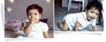 Hiiiiiiiii! My name is Samana; I'm almost a year old. Today, we are going have a big party at home; all of Amma's friends and Appa's friends will be here. This morning, just like every other morning, I had to wake Amma and Appa up. They are such big people, but they can't get up on their own! I have to crawl all over them, pull their hair, poke my fingers into their mouth and ears; only then will they get up. Soon, Amma and Mangala Dodamma are in the kitchen, cutting stuff. If I go into the kitchen now, they will surely say "No! Samana, no!" So let me see if there are other interesting things I can do. I think I'll go into the bathroom. It's a fascinating place. There is a box in the corner, filled with paper and hair. It's very light and I can easily tip it over. See! I've done it again. I'm strong! There is also a big white thing there and, if I can find the right place and pull, it gets longer and longer! My! That's the longest I've ever been able to pull it. Oops! There's Amma yelling, "No, Samana, don't play with the toilet paper! And I've asked you so many times not to overturn the dustbin!" What I don't understand is: Why have such interesting things around the house when I'm not allowed to play with them? Amma is looking pretty cross, so I better go to Dodamma. She is really easy to fool. Any time I want to be carried, all I have to do is to go to her, grab her legs and look up. She falls for that look every time! Amma and Appa pick me up only if I cry for a while. Yesterday, we went out in that big, covered thing -- the car. I don't like it when they tie me up in my car seat. The elders get to do all the nice things, like sitting in the front and turning the wheel round and round. If I try to do that, everyone starts saying "No! Samana, no!" Sometimes, I think that's their favorite word! Harish dodappa is also very nice. He allows me to play with everything, including that black thing he carries with him all the time -- the one that sometimes makes a ringing noise. Other adults don't allow me to play with things I really like. Like the pile of shoes and socks there, in the corner by the door. I keep trying to pick up one of them and put it in my mouth, but I get scolded every time. Adults are buddhus. They don't know how much fun doing something like that is! It's time for my bath. Amma just went into the bathroom with a towel and my soap. I love taking bath, but not when water is poured on my head or when it goes inside my eyes. Now comes the dressing-up part. Amma has stitched a nice long dress for me. She calls it langa-dawani. She makes me wear a long gold chain around my neck. It's rather nice, especially since it is long enough to go into my mouth. Amma also has a long chain of black beads around her neck. Whenever she carries me, I try to chew it. She combs my hair and puts a long bindi on my forehead. She tells me sternly not to get messy, not to play in water, not to roll around and not to lose the chain. Sigh! Life as a baby can really be hard! I think the party is about to begin. Many people have come in all of a sudden. Hey! There's someone my size and he's coming near me. I think I'll try and talk to him. Hmmm! He's kissed me -- a wet, sloppy kiss; just like the ones I give. I think he's nice; besides, he has a nice big toy in his hand. I wonder if he'll let me to play with it? Oof! He's trying to pick me up! I don't think he can. He is not big enough. Aaaahhhhh! He's dropped me! Waaahhhhhhh! There's Amma and another lady, his amma, I think. I'm sure Amma can make the hurt go away. His amma spanks him and says, "You are just three. How can you carry a baby when you are a baby yourself? Don't ever try to carry Samana." I hope he doesn't come near me again. I see another baby, he's even smaller than me. Hmmm! I wonder if I can carry him. He seems about half my size, it should be a breeze. I crawl over to him as quickly as I can, but there is a lady sitting near him. As soon as she sees me, she picks him up and says, "No, Samana, you can't carry Vishnu. You are way too small." How do they know that when they will not even let me try? I like this party, except for the fact that there are so many men. They look scary and ferocious. One man -- Amma says he is Prasad uncle -- starts clapping and talking to me in a loud voice. I don't like that! Dodamma catches the expression on my face and comes running to pick me up. She is angry with Prasad uncle, "Why do you make such loud noises? You are scaring Samana." Another uncle heads towards me. I cling tightly to Dodamma. He sticks his tongue out and makes the kind of funny noises Amma tells me not to do. But this uncle is doing the same thing! I really don't understand these big people. They make life so complicated. Actually, I think the uncles are okay as long as they don't try to pick me up. I like only two men -- Appa and Dodappa. Everyone else looks rather untrustworthy! Luckily, Amma or Dodamma are always around to protect me from guests who try to pick me up. If they are not, I just let out a loud howl and the uncle concerned quickly puts me down! These people are so big, yet they are scared of a little baby like me! Now comes the interesting part. Amma brings a big white thing, with blue and red and pink designs on it. It even has a candle, which Appa lights. Amma picks me up and asks me to blow the candle. But I don't want to blow it; I want to touch it. This is the first time I seeing a candle from such a close distance. Amma, though, is holding my hand tightly; she must have guessed my intention. Everyone is looking at me and saying, "Blow the candle, Samana." Wahhhh! I can't take all this pressure! Amma holds me close and consoles me. Appa blows the candle, cuts the cake and quickly puts away the big knife with its bright red bow. Cheh! Bad luck. I was hoping they would forget to take it away. These adults don't trust me at all! Dodamma and Dodappa take lots of pictures. Everyone sings 'Happy birthday to you.'