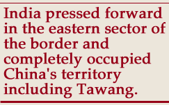 But after the founding of New China and particularly after the peaceful liberation of Tibet, the Indian government pressed forward in an all-out advance on the illegal McMahon Line in the eastern sector and completely occupied Chinese territory, including Tawang, south of that line and north of the traditional boundary.