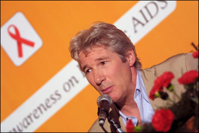 Speaking of his own involvement with AIDS victims, Gere talked of the time when friends and peers stricken with the virus would hide their affliction out of shame. His message: "Bring awareness about the virus." Back | Start |