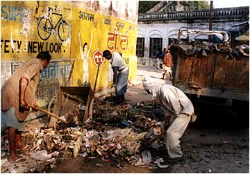 It may be the land of Ram, but human hands are still required to clean the streets of filth.