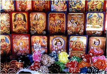 Pictures of gods on sale at a market on the way to the disputed site. If the VHP goes ahead with its threat to construct the temple, it would require nothing less than divine intervention to ensure that the country does not go up in flames again.