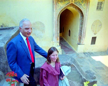 US-based writer Ved Mehta takes a round of the Neemrana Fort, a heritage hotel, with his wife.