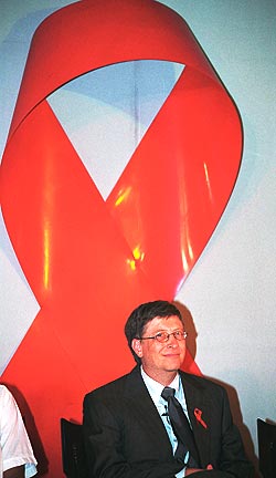 a $100 million grant to battle HIV/AIDS in India during a press conference in New Delhi on Monday.
