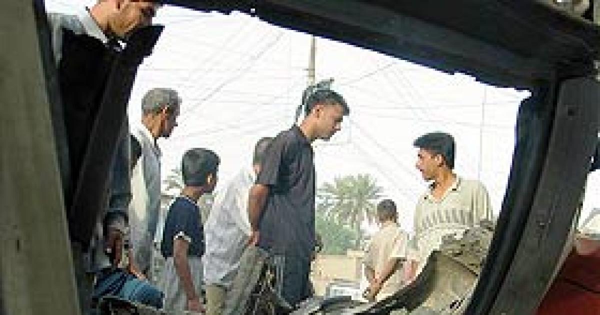 The blast set ablaze eight cars in the restaurant's parking lot, the focal point of a bloody, rubble-strewn scene that US and Iraqi police quickly cordoned off. Shards of glass, shoes and splattered breakfast meals covered the restaurant's floor as emergency workers raced around overturned tables and wooden chairs in a bid to treat the casualties.