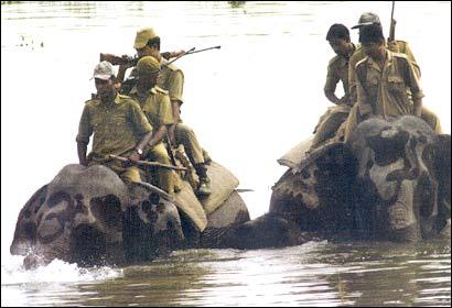 Located on the banks of the Brahmaputra, the park cannot escape the fury of floods.