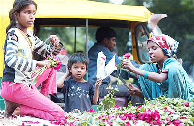 Selling flowers at traffic signals, as these children do, is a relatively cushy job.