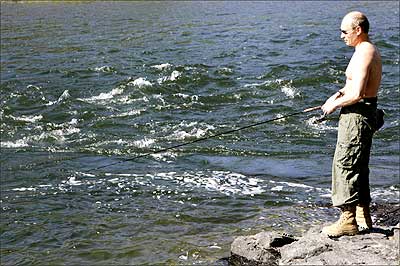 Image: Russian President Vladimir Putin fishing in the Yenisei river in Russian Tuva republic.