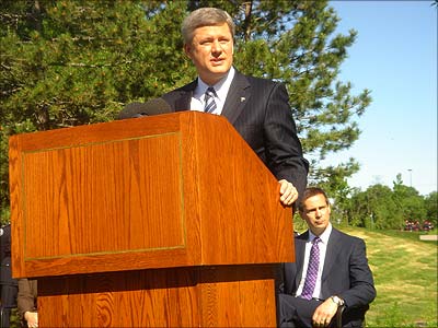 Image: Prime Minister Harper speaking at the unveiling of the memorial
