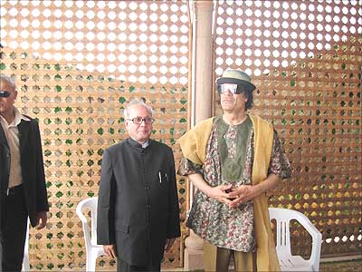 Image: Pranab Mukherjee with Libyan leader Col Muammar Gaddafi.