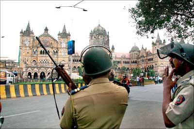 Image: Policemen outside the Chhattrapati Shivaji Terminus in Mumbai, November 28. Photograph: Ritam Banerjee/Getty Images