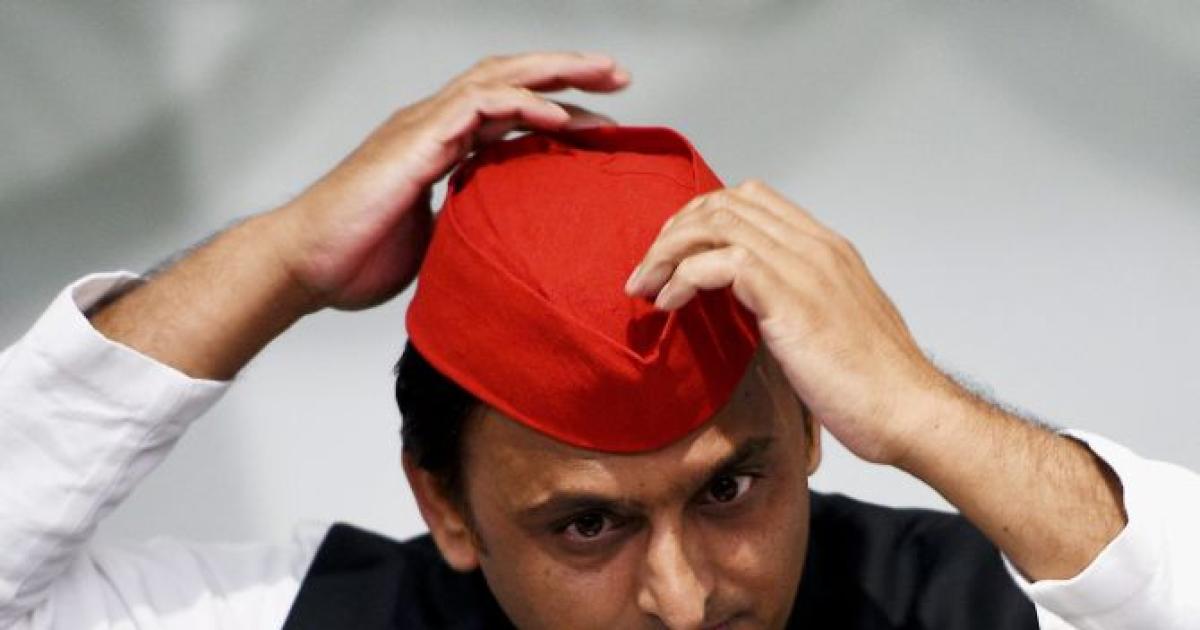 IMAGE: Samajwadi Party President Akhilesh Yadav at a press conference in Lucknow. Photograph: Nand Kumar/PTI Photo