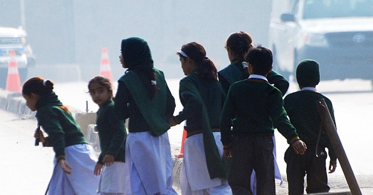 Image: Schoolchildren run away from the school that was attacked by Taliban terrorists in Peshawar.