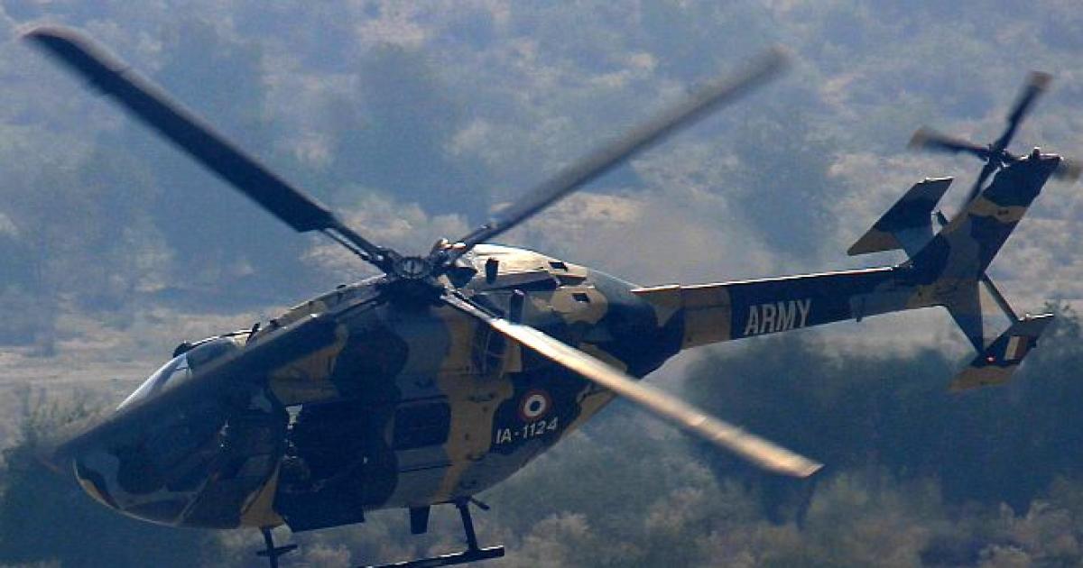 IMAGE: An Indian Army's Dhruv transport helicopter takes off after inserting soldiers on the ground during the India-Russian joint military exercise 'INDRA 2013' in the Thar desert, Rajasthan. Photograph: Kind courtesy The Indian Army