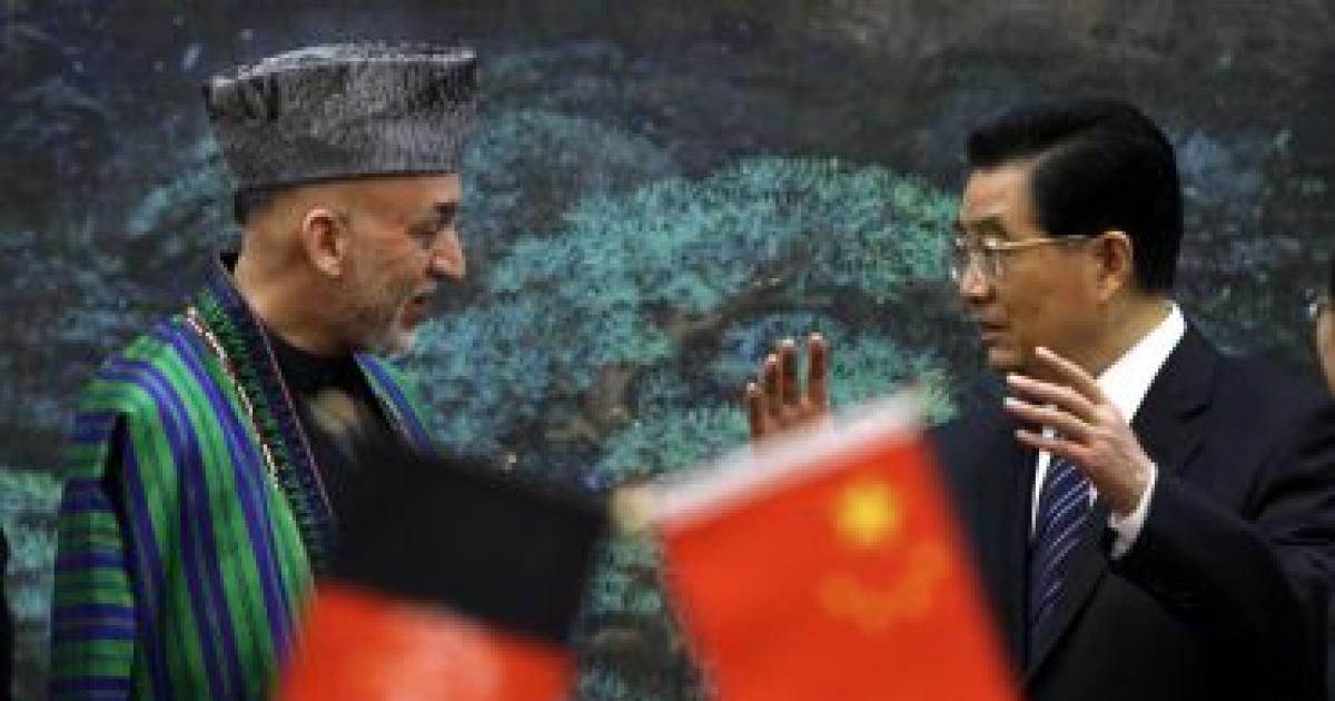 Image: China's President Hu chats with Afghanistan's President Karzai in Beijing in this archival picture