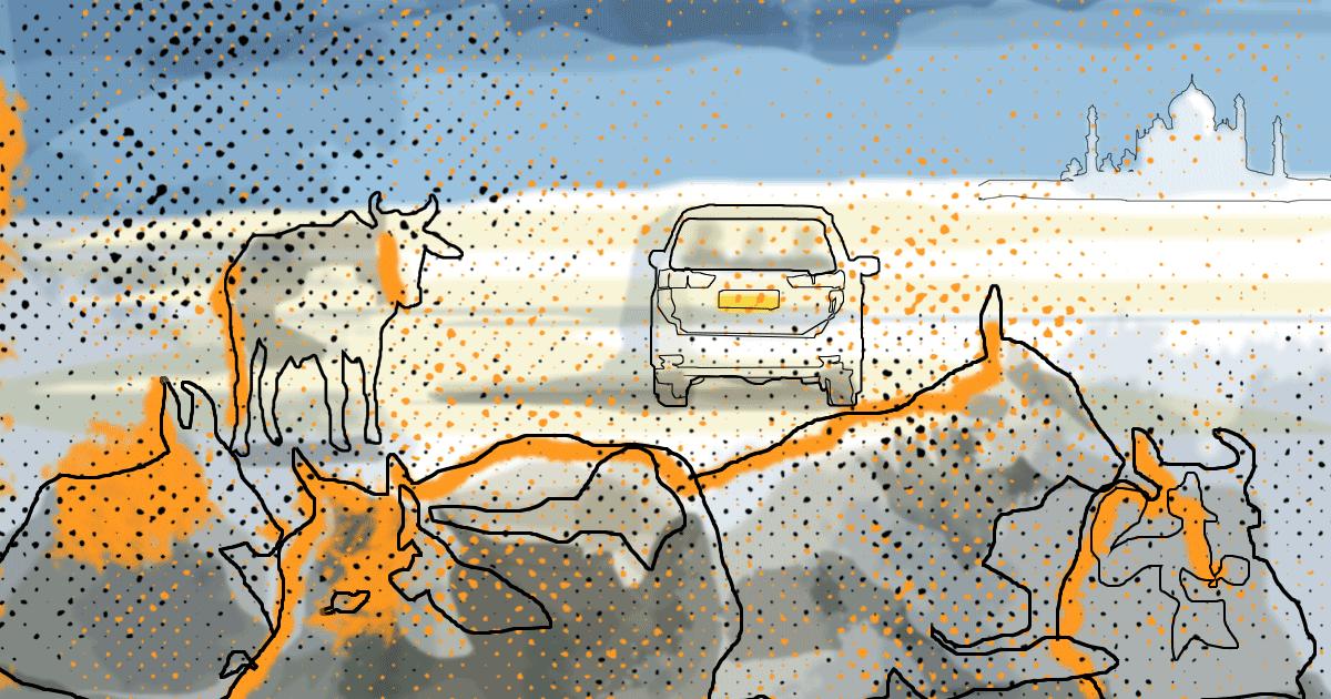 One has to be careful while driving in UP, the driver informs us, because if you drive into a cow then gaurakshaks could come after you.