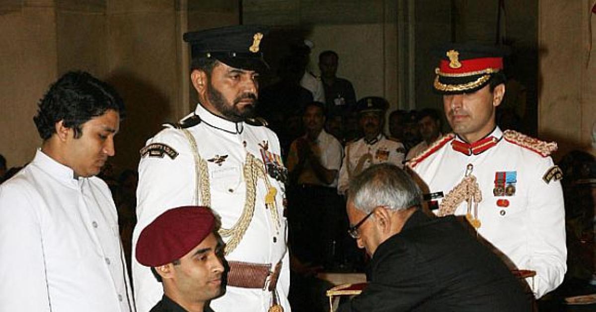 Image: President Pranab Mukherjee presenting the Shaurya Chakra to Lieutenant (now Captain) Manish Singh of Special Forces, at an investiture ceremony in April 2013. Photograph: PIB.