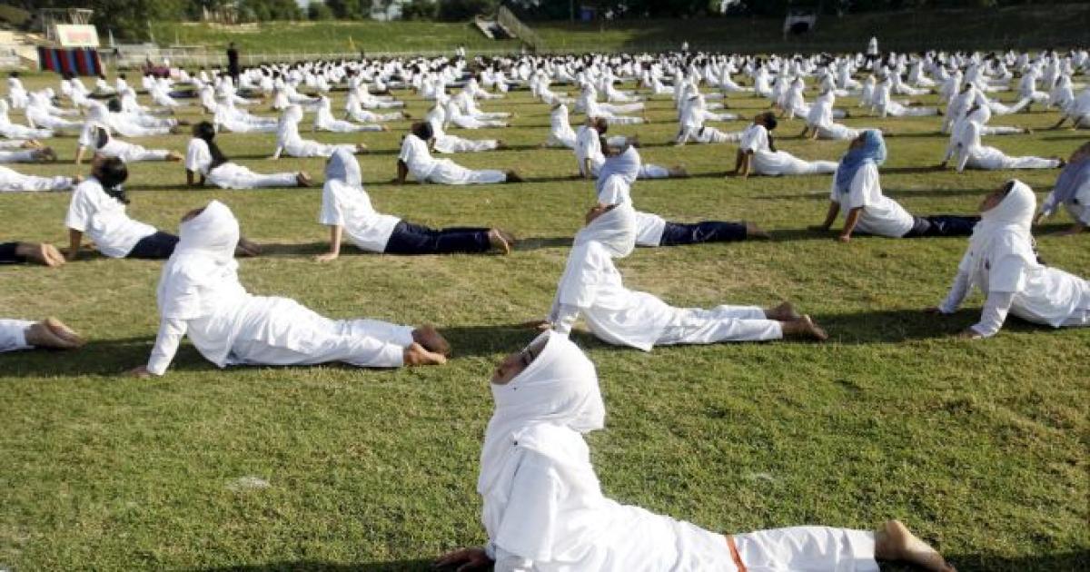 Image: International Yoga Day being celebrated in Srinagar, Jammu and Kashmir, on June 21, 2015. Photograph: S Irfan/PTI Photo.
